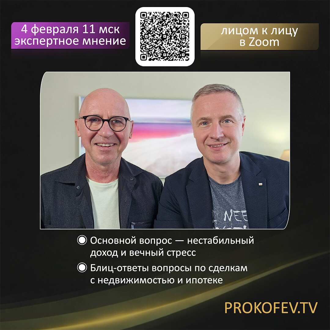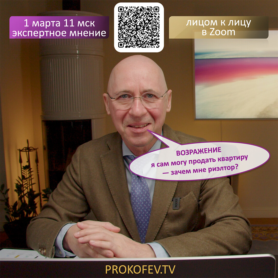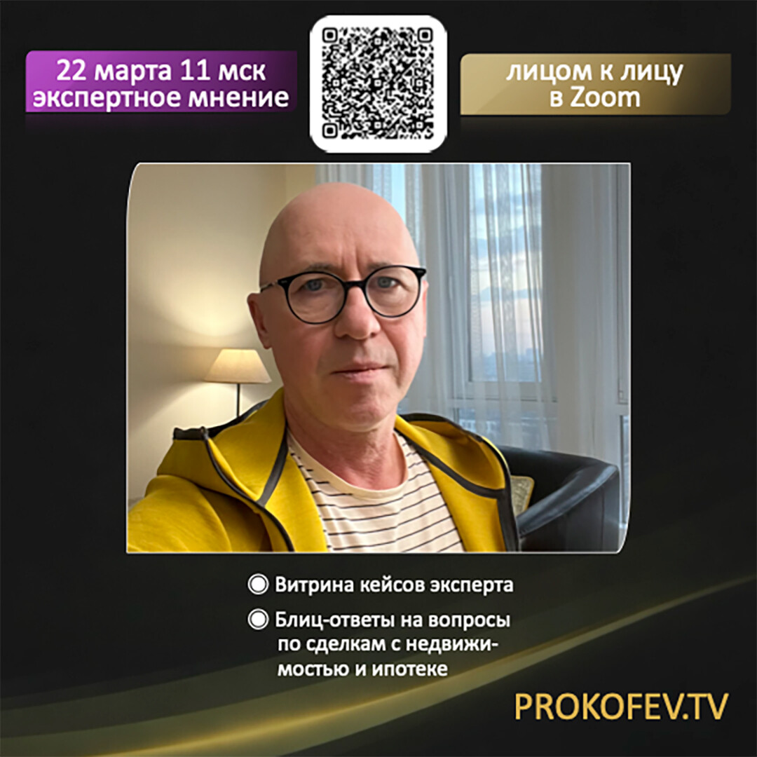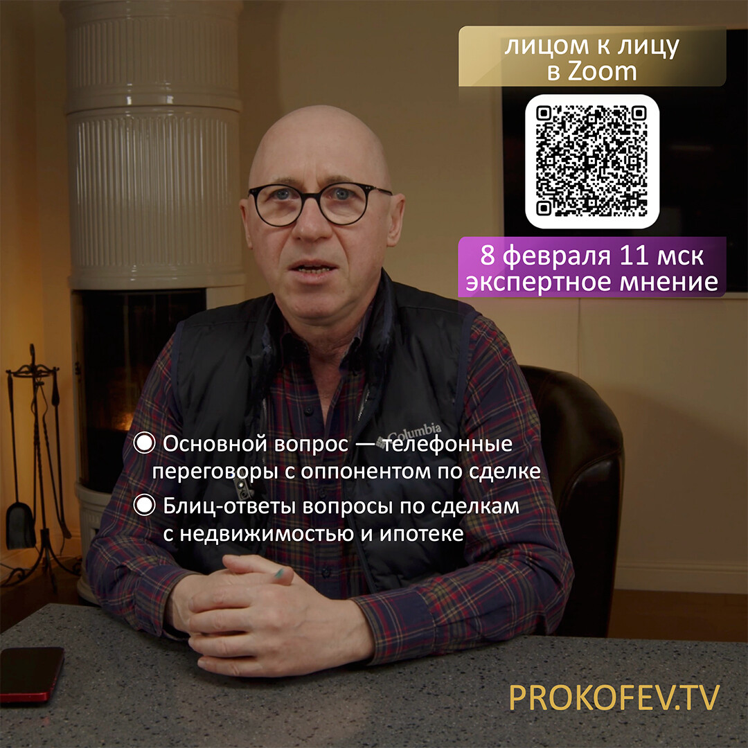 Приветствую! Я Сергей Прокофьев, специалист в сфере недвижимости с 2008 года. Организую обучение сделкам с недвижимостью, провожу курсы и вебинары. Каждую среду и воскресенье в 11:00 мск консультирую лично.