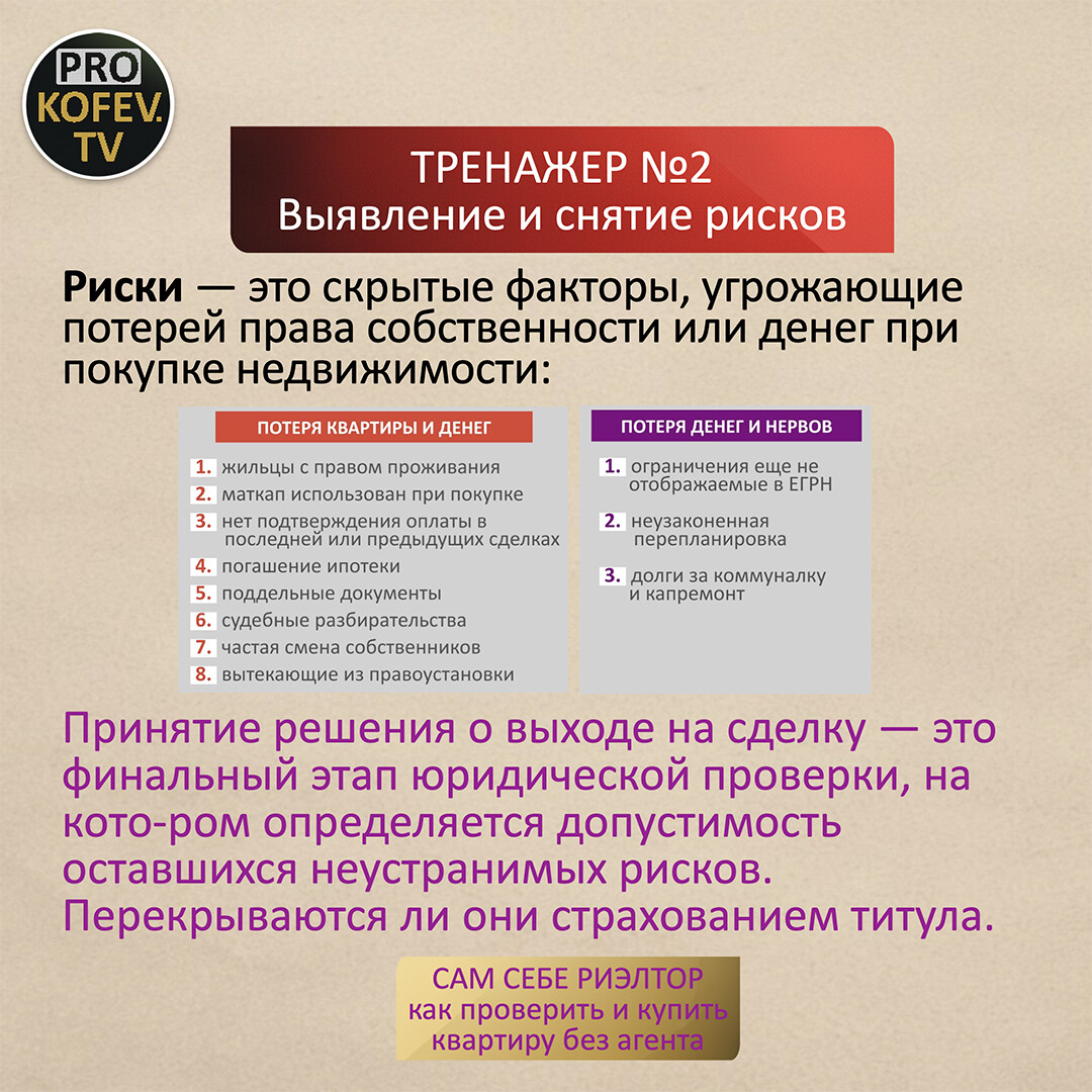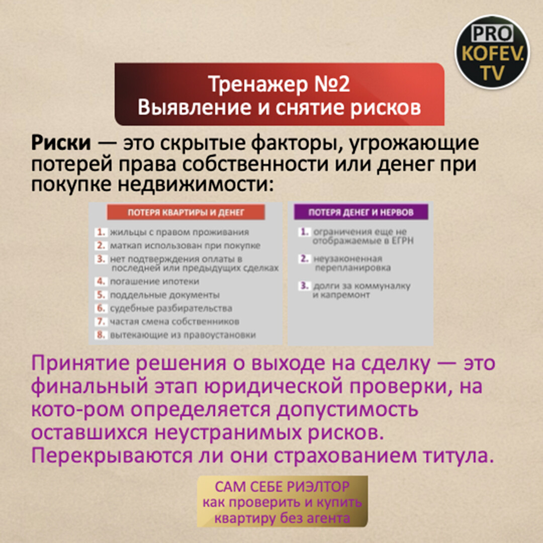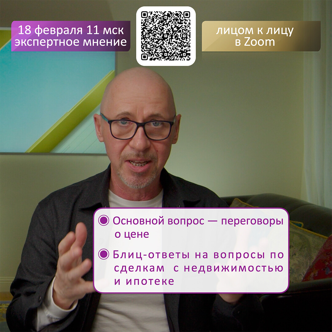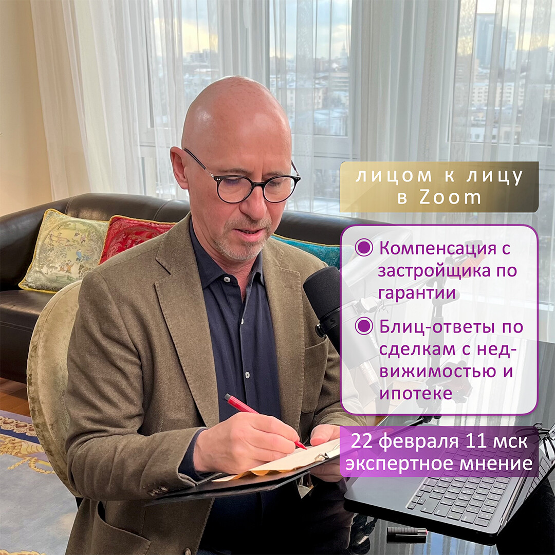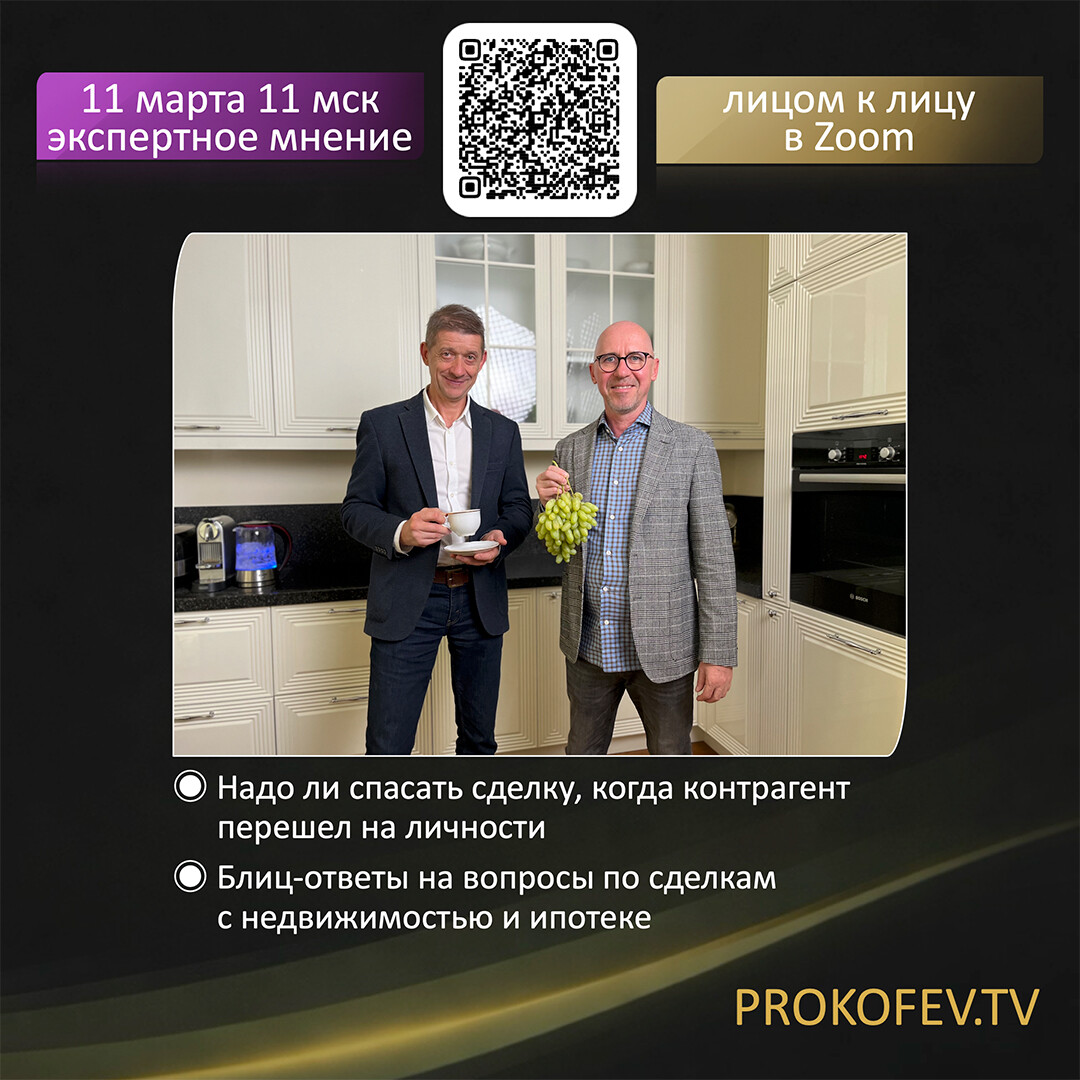 Приветствую! Я Сергей Прокофьев, специалист в сфере недвижимости с 2008 года. Организую обучение сделкам с недвижимостью, провожу курсы и вебинары. Каждую среду и воскресенье в 11:00 мск консультирую лично.