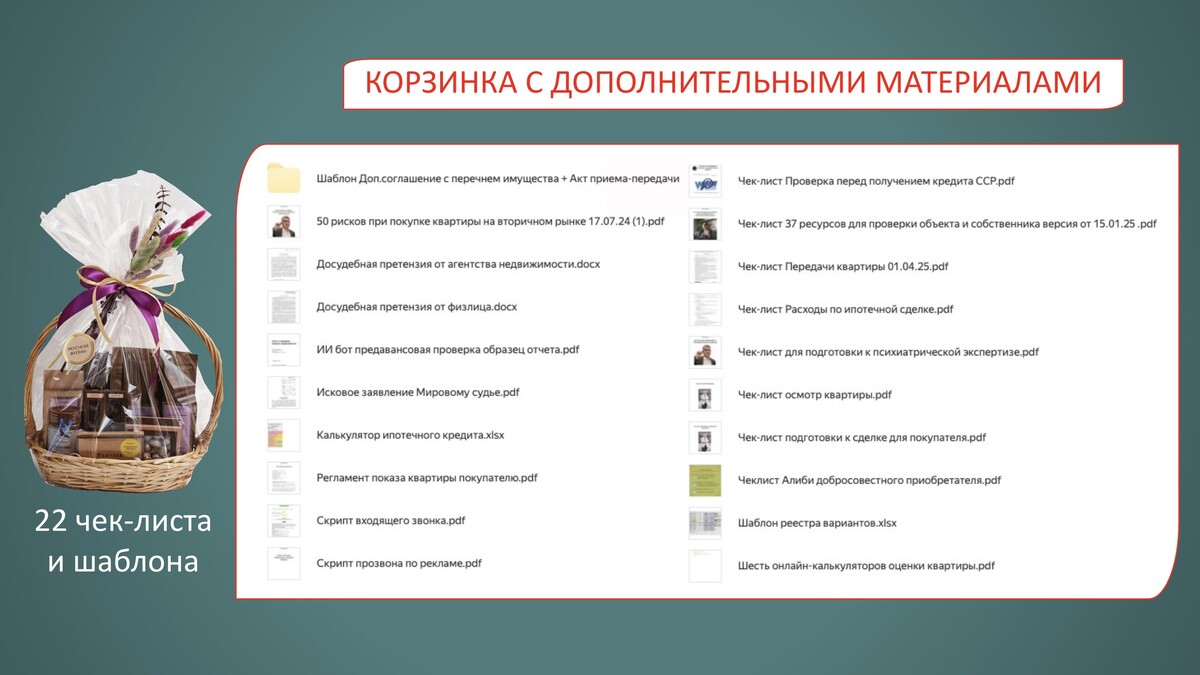 — контроль комплекта документов к сделке